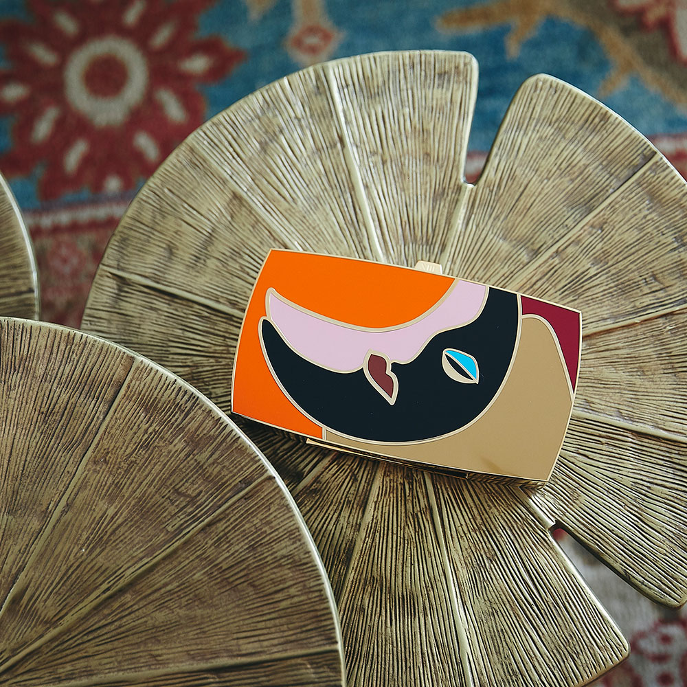 The story ends with bag #13, “The Kiss”. An homage to Klimt, this last bag of the collection represents the overflowing desire & passion that fill a new encounter. And it is a kiss that, needless to say, happens right at the stroke of midnight. Because, after midnight, the possibilities are infinite, and who knows what could happen next…