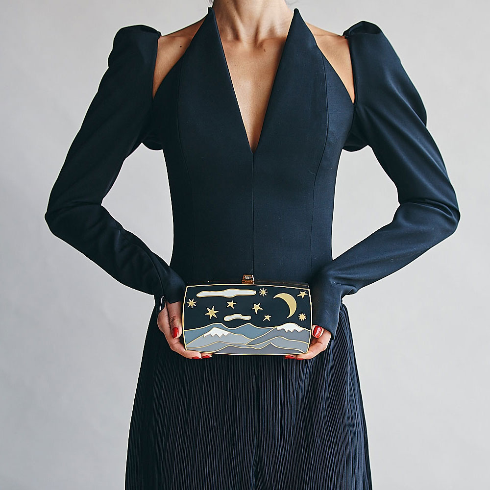 Then, as illustrated on bag #3 of the collection, “The Journey” begins. She travels night & day, roaming tirelessly through the unknown, in search of the land of her calling.