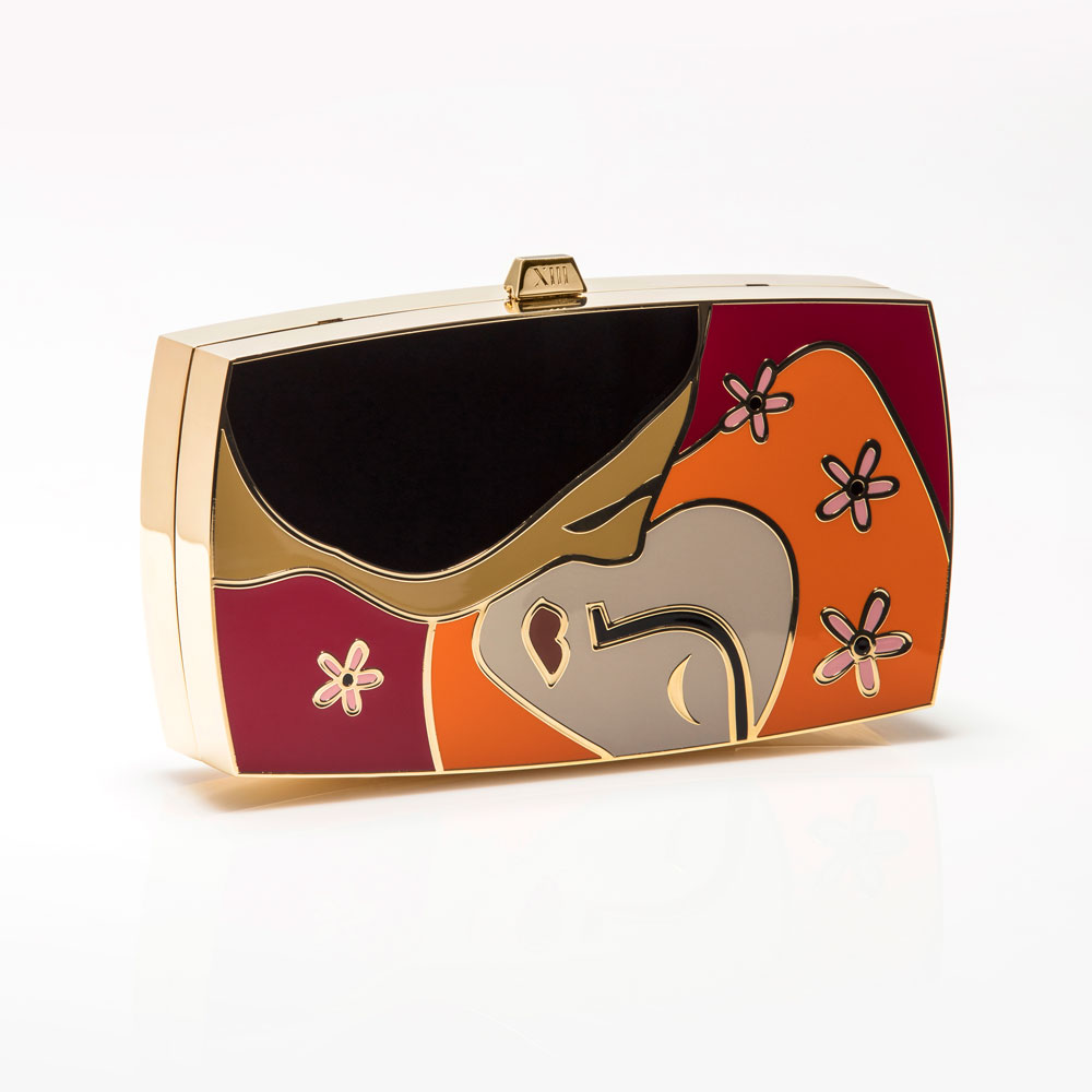 The story ends with bag #13, “The Kiss”. An homage to Klimt, this last bag of the collection represents the overflowing desire & passion that fill a new encounter. And it is a kiss that, needless to say, happens right at the stroke of midnight. Because, after midnight, the possibilities are infinite, and who knows what could happen next…